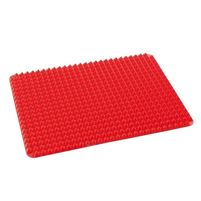 - The unique pyramid design of the silicone cooking sheet offers an effective oil filtering effect, preventing excess oil from being absorbed by food. This feature promotes healthier cooking by distributing calories evenly and helping to control unhealthy cholesterol levels. By using this silicone baking mat, you can enjoy delicious meals while maintaining a heart-healthy diet, making it an essential tool for health-conscious cooks.
